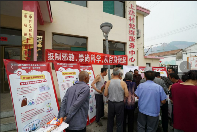 為了慶祝新中國成立70周年,進一步增強群眾反邪教的意識,提高他們抵御邪教侵蝕的能力,弘揚科學精神,營造一個文明和諧的環(huán)境,6月14日上午,山西省反邪教協(xié)會組織相關(guān)人員在上武村黨群服務中心開展了“防范邪教”宣傳警示教育活動。