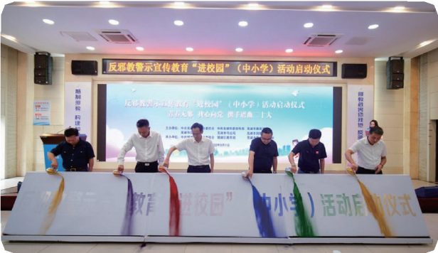 ▲阜陽市陶廟鎮(zhèn)中學(xué)開展反邪教警示教育宣傳活動將傳統(tǒng)媒體與新媒體相融合,構(gòu)建“線上+線下”同步推進反邪教警示宣傳新格局。安徽反邪教新媒體“兩微一抖”三個賬號再次榮獲中央政法委第四屆“四個一百”優(yōu)秀政法新媒體稱號。安徽反邪教微博榮獲2022年全國十大政法委微博榮譽稱號,排名全國第二。一是用好新技術(shù)新媒體。結(jié)合大學(xué)、高中新生軍訓(xùn)和新生入學(xué)、“教師節(jié)”等時機,充分利用新媒體平臺、校園網(wǎng)絡(luò)、校園廣播及校園各類場所LED屏等宣傳平臺,全方位多時段推送反邪教警示宣傳資源。安徽反邪教“兩微一抖”新媒體矩陣及時跟進宣傳,中國反邪教網(wǎng)開辟地方動態(tài)安徽頻道集中宣傳,安徽新聞聯(lián)播、央廣網(wǎng)安徽頻道、《人民日報》客戶端等新媒體賬號第一時間對相關(guān)活動進行報道宣傳,用新媒體匯聚反邪“青春力量”。二是用活校園反邪文化。拓展警示宣傳手段,大力營造抵御邪教的校園文化和輿論環(huán)境。蕪湖市在全市大中小學(xué)舉辦“蕪湖市第一屆反邪教作品創(chuàng)意設(shè)計大賽”,1.3萬多名學(xué)生報名參加,網(wǎng)絡(luò)點擊量破億;阜陽市開展“爭做無邪少年,獻禮黨的二十大”書法作品征集活動;池州市開展為期一個月的“反邪教·共行動”主題宣傳教育活動;蚌埠市開展反邪教知識線上有獎競答;省公安廳、淮北、滁州、安慶等地開展“反邪教書籍送校園”活動。▲蕪湖市反邪教警示宣傳教育“進校園”(中小學(xué))活動啟動儀式