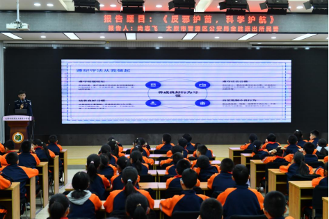 太原市晉源區(qū)公安局金勝派出所民警以《反邪護(hù)苗,科學(xué)護(hù)航》為題,開(kāi)展了一堂生動(dòng)的法治教育課。他圍繞“法律是什么”“生活與法律”“不良行為的定義與后果”等內(nèi)容,結(jié)合真實(shí)案例剖析青少年常見(jiàn)不良行為及其法律風(fēng)險(xiǎn),引導(dǎo)同學(xué)們樹(shù)立行為邊界意識(shí),自覺(jué)抵制誘惑,做遵紀(jì)守法的好少年。尚志飛還特別強(qiáng)調(diào)了邪教的非法組織本質(zhì),提醒同學(xué)們遇到可疑情況及時(shí)向家長(zhǎng)、老師或警方求助。